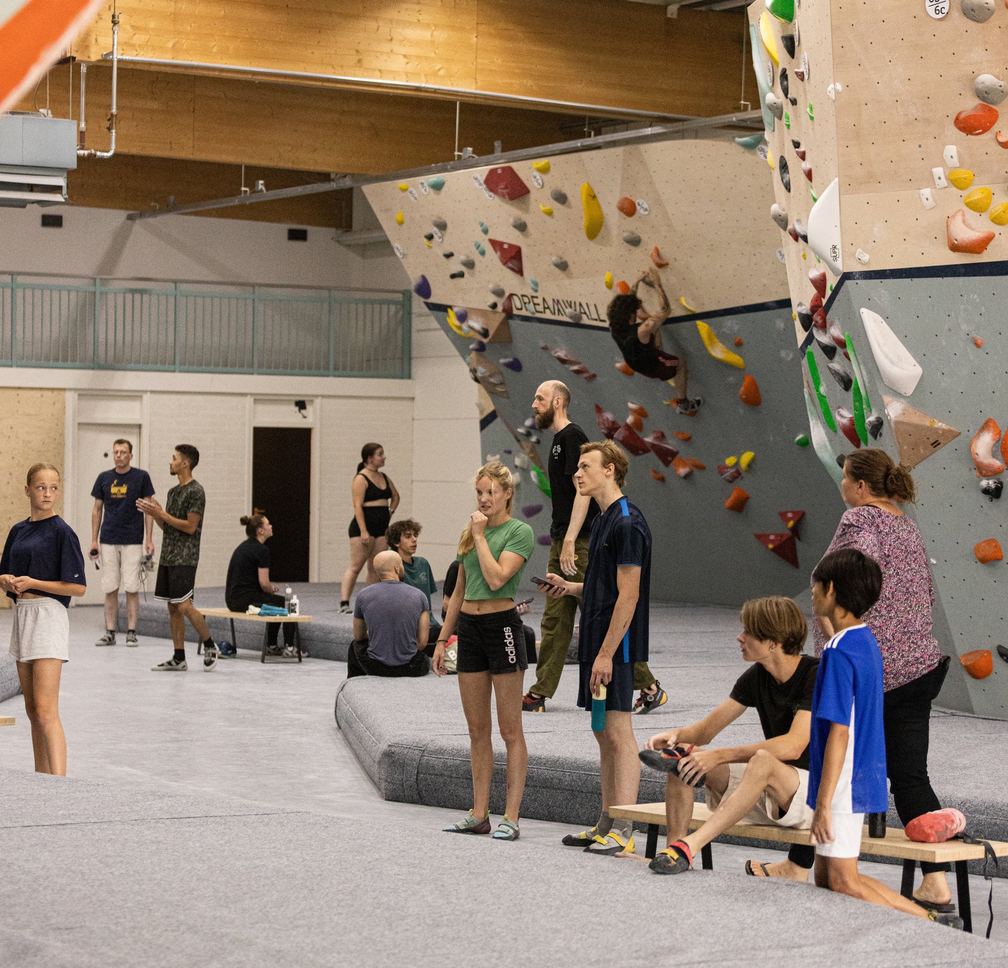 Onder begeleiding van een instructeur ontdekken jullie samen de wand. Verwacht inspanning, plezier en genoeg gespreksstof voor de rest van het jaar. Na afloop schuif je aan in onze zithoek: koffie, frisdrank, een tosti of een biertje — maar dat laatste pas als je klaar bent met klimmen.